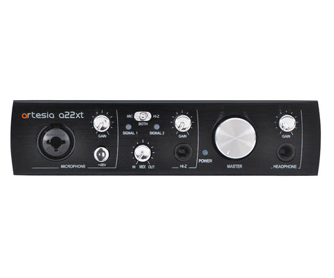 This interface lets you record high-resolution 24 bit 96KHz audio to your laptop and other USB devices. The Artesia A22XT is a professional 24-bit audio interface, offering maximum flexibility as a fully bus powered USB device with pristine audio quality. It features 2 analog inputs and 2 analog output channels with RCA connections, a microphone preamplifier with XLR input and support for +48V phantom power, a HI-Z instrument input for guitars (and others), a high quality headphone output and TRS line outputs.