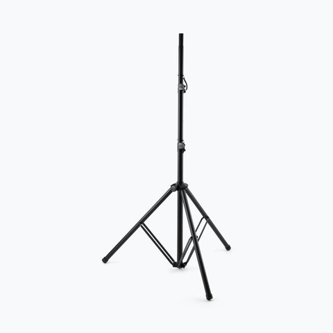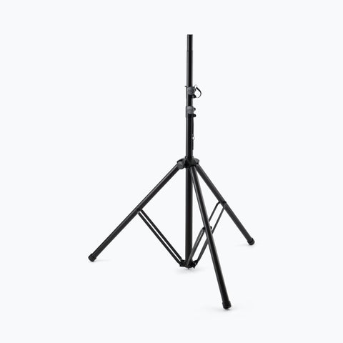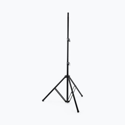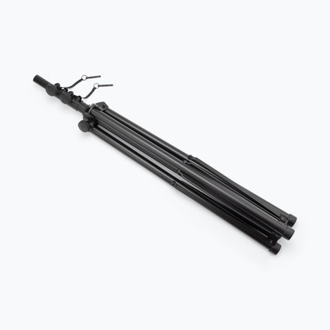 Our versatile LS-SS7770 10' Lighting/Speaker Stand features a towering maximum height of 10 feet. Its versatile reversible pole supports all standard speaker cabinet mounting sockets and lighting bars. The stand's height adjusts to accommodate a variety of applications and locks in place to ensure reliable positioning. Its heavy-duty construction, double-braced base, and nonslip feet work together to deliver exceptional stability and load balance even on irregular surfaces. The durable black finish preserves the professional appearance of any space. For convenient, compact storage and transportation, the tripod base folds flat.