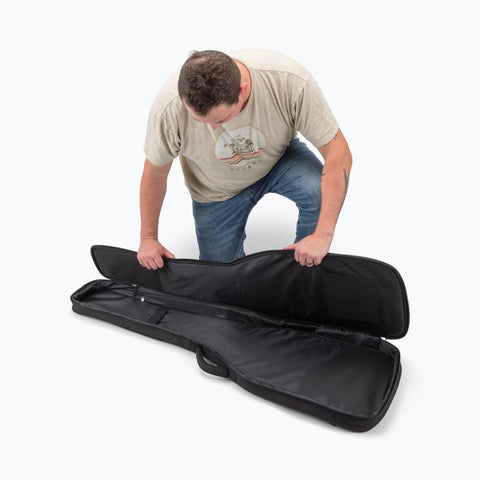 The case-like structure of the GBBADV4770BK Adventure Series Bass Gig Bag delivers robust protection, safe storage, and ease of transportation for a bass guitar—without the added weight of a hardshell case. The rugged, moisture-resistant 600D-nylon exterior, thick foam padding on all four sides, and smooth interior lining defend the instrument against dents, scratches, spills, and inclement weather. Plus, a hook-and-loop strap holds the neck firmly in place, preventing it from shifting during transportation. Three outer accessory compartments with zipper closures conveniently keep picks, capos, tuners, strings, and other tools and supplies organized and with the instrument. Two adjustable straps enable ergonomic backpack-style transportation while the padded top handle makes it easy to comfortably lift and carry like a traditional hardshell case. And the two-pull zipper keeps the bass securely contained and opens and closes at either end or any point in between for efficient loading and unloading.