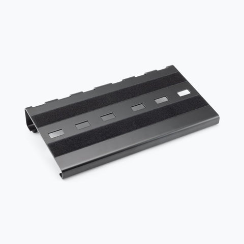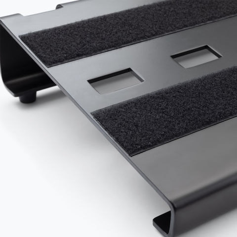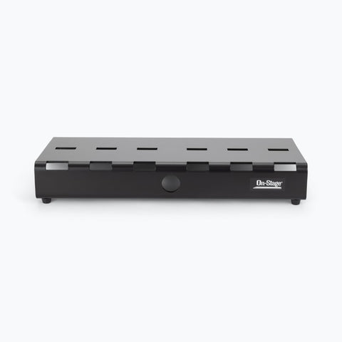 - Holds about 10 pedals for an effect chain that's organized, connected, and easy to move Heavy-duty aluminum construction for a stable foundation and lightweight portability Cutouts in the platform facilitate cable management Nonslip rubber feet prevent skidding when using the pedal switches
