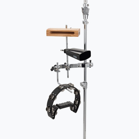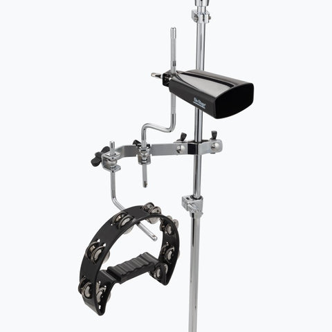 - Steel rod provides strength for dependable attachment of percussion accessories to mounting brackets or percussion racks L-Shaped rod enables positioning of percussion accessories in multiple orientations at various distances from the player or other gear Four sections of knurled surface prevent slipping to keep mounted equipment securely in place 9.5mm diameter rod accepts a wide range of hand-percussion instruments and accessories such as cowbells, woodblocks, and tambourines Chrome plating prevents corrosion