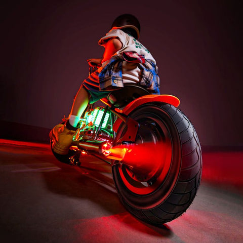 - Cool Retro Chopper Design: Features a vintage motorcycle look, atmosphere lights, a built-in speaker system, and roaring motor sound effects for a realistic ride.