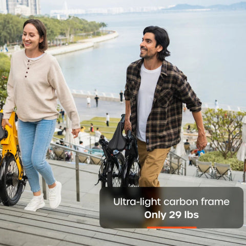 - Ultra-Lightweight 29 lb Carbon Fiber Folding Ebike: Full carbon fiber frame and handlebars make this one of the lightest folding electric bikes available, easy to carry upstairs, lift into vehicles, and store in compact spaces.
