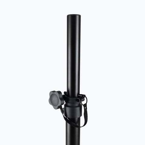• Height settings are reinforced with a locking pin to ensure reliable speaker support Comes with everything needed to support two speakers on individual stands Height adjusts 45"–74.75" to adapt to a wide range of venues and applications Bag with a drawstring closure and shoulder strap for ease of storage and transportation