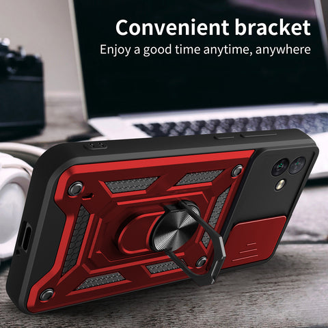 Reiko Kickstand Ring Holder with Slide Camera Cover TPU Magnetic Car Mount for Galaxy A04 in Red